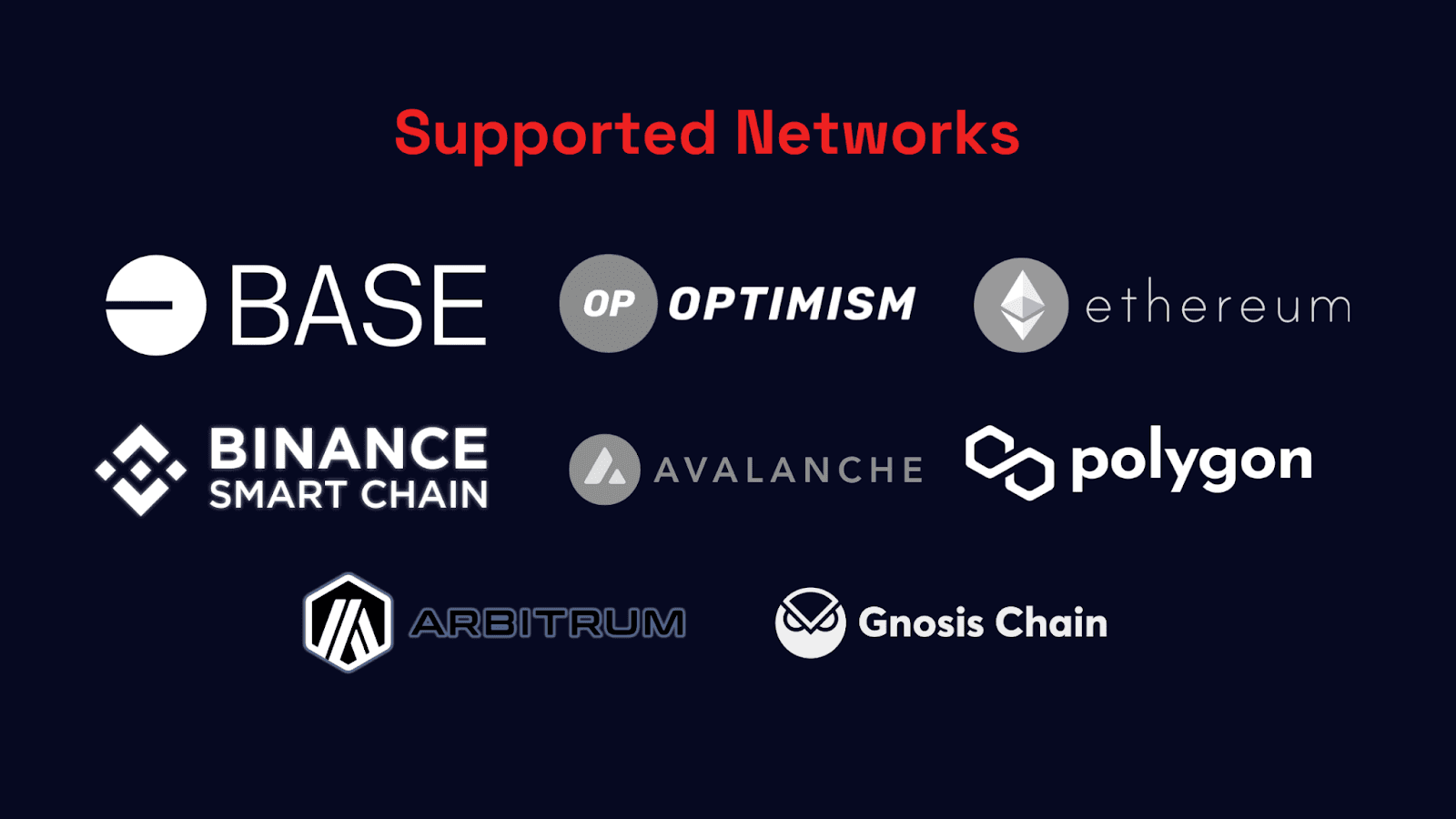 Network support has been expanded to include additional blockchains such as Base and Optimism.