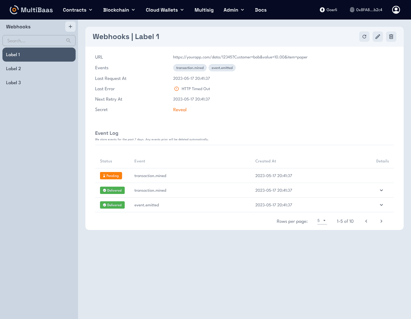 MultiBaas facilitates multiple ways to monitor on-chain state changes. The latest addition of webhooks allows developers to receive automatic alerts whenever a blockchain event occurs.