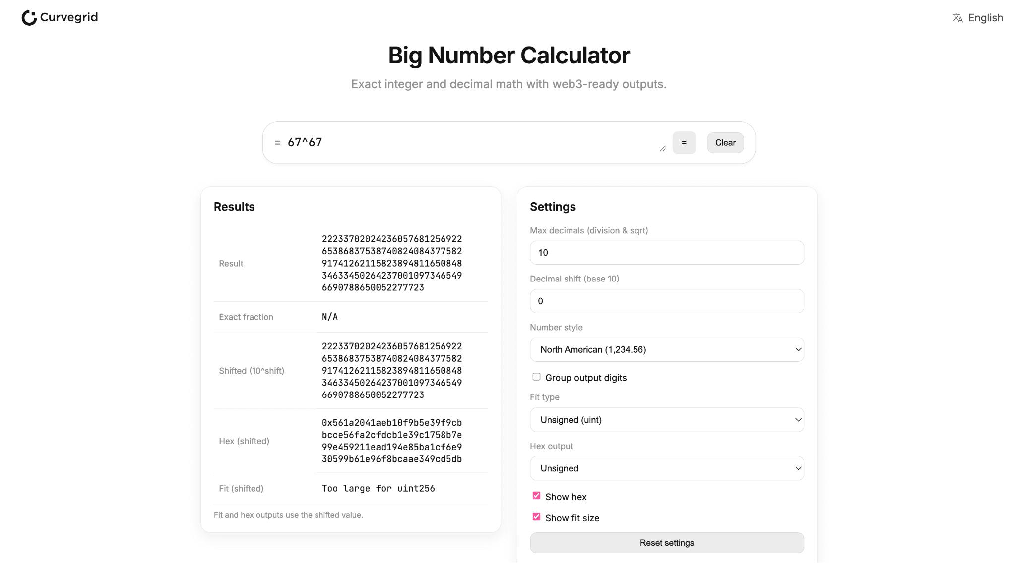 BigNum.app is an arbitrary-precision decimal calculator. This distinction matters because most tools rely on IEEE floating-point math, which is binary-based, not decimal.